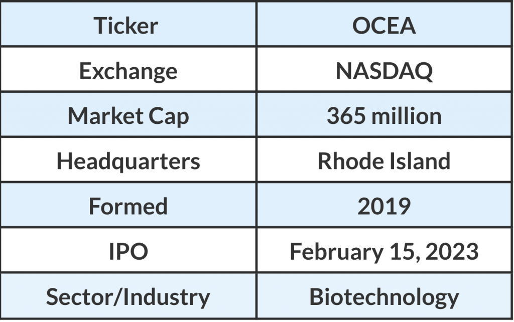 Ocean Biomedical became a registered company on February 15, 2023, through the reverse merger of the special purpose acquisition company Aesther Healthcare Acquisition Corp. Shareholders received 23.36 million shares at $10 each. After the merger, 82% of the company is now owned by OCEA shareholders. Ocean Biomedical has a market capitalization of around $365 million.